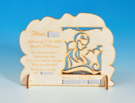 Daarmee kunnen wij tekst, logo’s en foto’s in bijvoorbeeld hout, leer of perspex graveren.